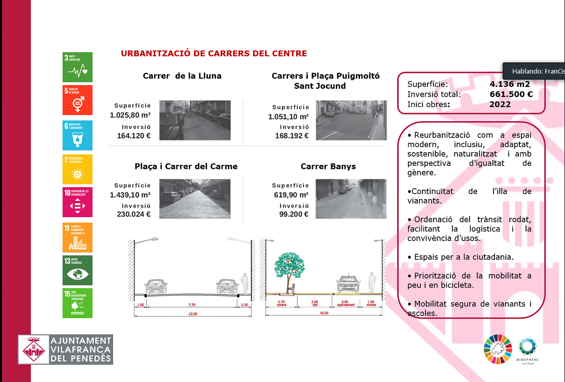 L'alcalde de Vilafranca, Pere Regull, i el tinent d'alcalde de l'Àrea d'Acció territorial i Serveis Urbans, Francisco Romero, han presentat aquest matí el Pla d'Intervenció Integral del Centre Històric i del carrer Comerç (PIICC). El pla consisteix en diferents actuacions de renovació urbana, econòmica i social que suposin una transformació dels àmbits del centre i del carrer Comerç i dels seus entorns d'influència amb l'objectiu de "fer una ciutat més amable, més còmoda, més sostenible, i amb més qualitat de vida", fet que "suposarà un canvi important per a Vilafranca", segons afirmava l'alcalde, Pere Regull. L'Ajuntament hi destinarà, d'entrada, 2MEUR del pressupost municipal i s'espera l'aportació d'altres fons europeus i estatals, fet que podria arribar a incrementar la xifra fins als 5MEUR.