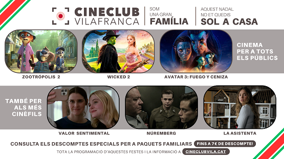 Cineclub Vilafranca engega aquest 28 de novembre la seva campanya de Nadal amb descomptes especials per a famílies, coincidint amb l’arribada a les sales de grans estrenes dirigides a tots els públics. Entre els títols més esperats hi destaquen Zootrópolis 2, Avatar 3: Fuego y ceniza i Wicked 2, que prometen emocions per a petits i grans.