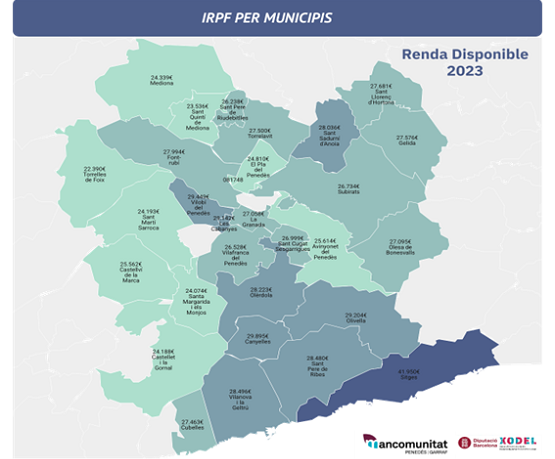 Els municipis amb rendes més altes són Vilobí del Penedès, les Cabanyes, Olèrdola i Sant Sadurní d’Anoia, mentre que Santa Margarida i els Monjos, Sant Quintí de Mediona i Torrelles de Foix es troben entre els de nivells més baixos.