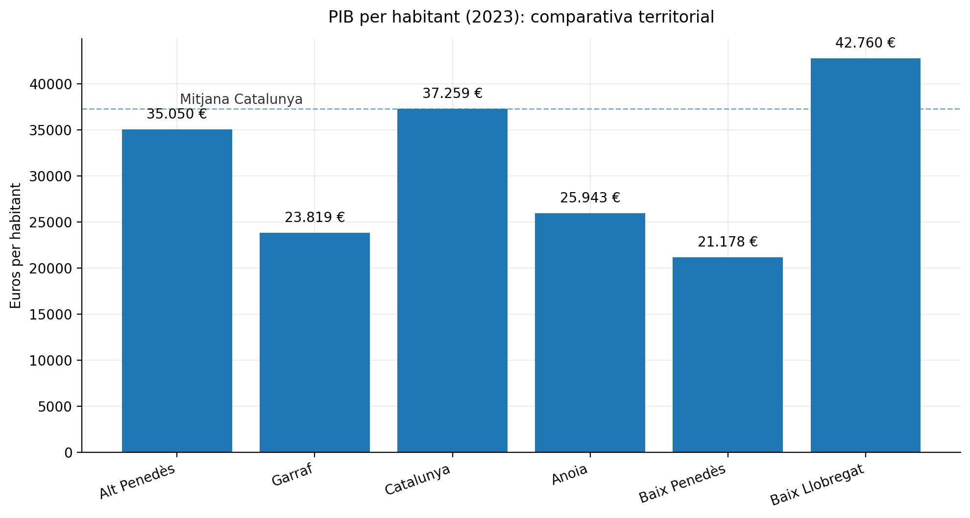 L’any 2023 va confirmar la solidesa econòmica de l’Alt Penedès, que va tancar l’exercici amb un PIB per habitant de 35.050 euros, segons les dades publicades per l’Institut d’Estadística de Catalunya.