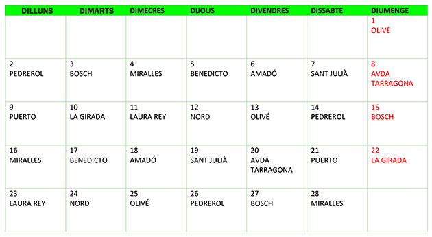 SETMANA del 2 de Febrer al 8 de Febrer Farmacia Naranjo