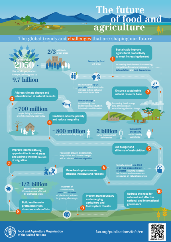 També quan hi ha veus contràries al sistema alimentari actual, per la seva imatge de negoci respecte d’un dret, i del malbaratament del medi ambient, i que pròximament haurà d'atendre a quasi 10 milions de persones, paga la pena llegir al Sr. QU Dongyu, director general de la FAO, que en juliol del 2025 (https://www.fao.org/director-general/news/details/fao-at-the-unfss-4--putting-youth--science-and-innovation--targeted-investments-and-trust-based-partnerships-at-the-centre-of-agrifood-systems-transformation/es), quan diu que diferents pressions -com el ràpid creixement demogràfic, la urbanització, l'augment de la riquesa i els canvis consegüents en els hàbits de consum- estan posant a prova la capacitat dels nostres sistemes alimentaris per proporcionar aliments nutritius i ajudar a oferir millors oportunitats de subsistència de forma mediambientalment sostenible. Assumeix també, que els nostres sistemes alimentaris contribueixen als fenòmens meteorològics extrems –i s'estan veient afectats per ells– associats amb el canvi climàtic, a la degradació de la terra i la pèrdua de la biodiversitat. Per fer front a aquests desafiaments és necessari un enfocament sistèmic que abordi l'abast i les dificultats d'una manera integral i sostenible.