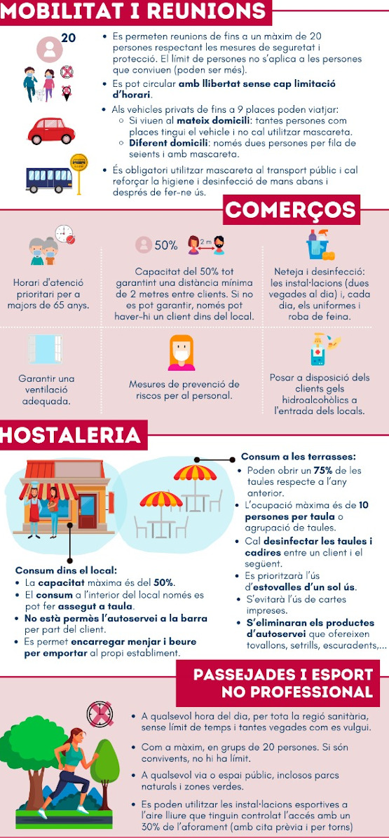Entrar a la fase 3 implica tot un seguit de possibilitats d'oci, negoci i vida social. Entre d'altres normes, les franges horàries desapareixen, fins i tot les reservades a les persones de més de 70 anys, i la mobilitat és lliure entre tots els territoris que hagin arribat a aquesta fase