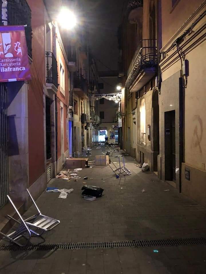 Els manifestants van sortir dels jutjats de Vilafranca i pretenien cloure la concentració davant de la comissaria dels Mossos d'Esquadra. La manifestació va provocar alguns aldarulls durant el seu recorregut, es va tallar el trànsit movent contenidors i es va malmetre mobiliari urbà. Un cop dissolta la manifestació, alguns individus van destrossar la porta d'entrada a l'Ajuntament i van llençar pintura a la façana. També es van destrossar els vidres d'algunes seus bancàries, els vidres de la seu local d'ERC i es va llençar pintura contra el local del PDeCAT.