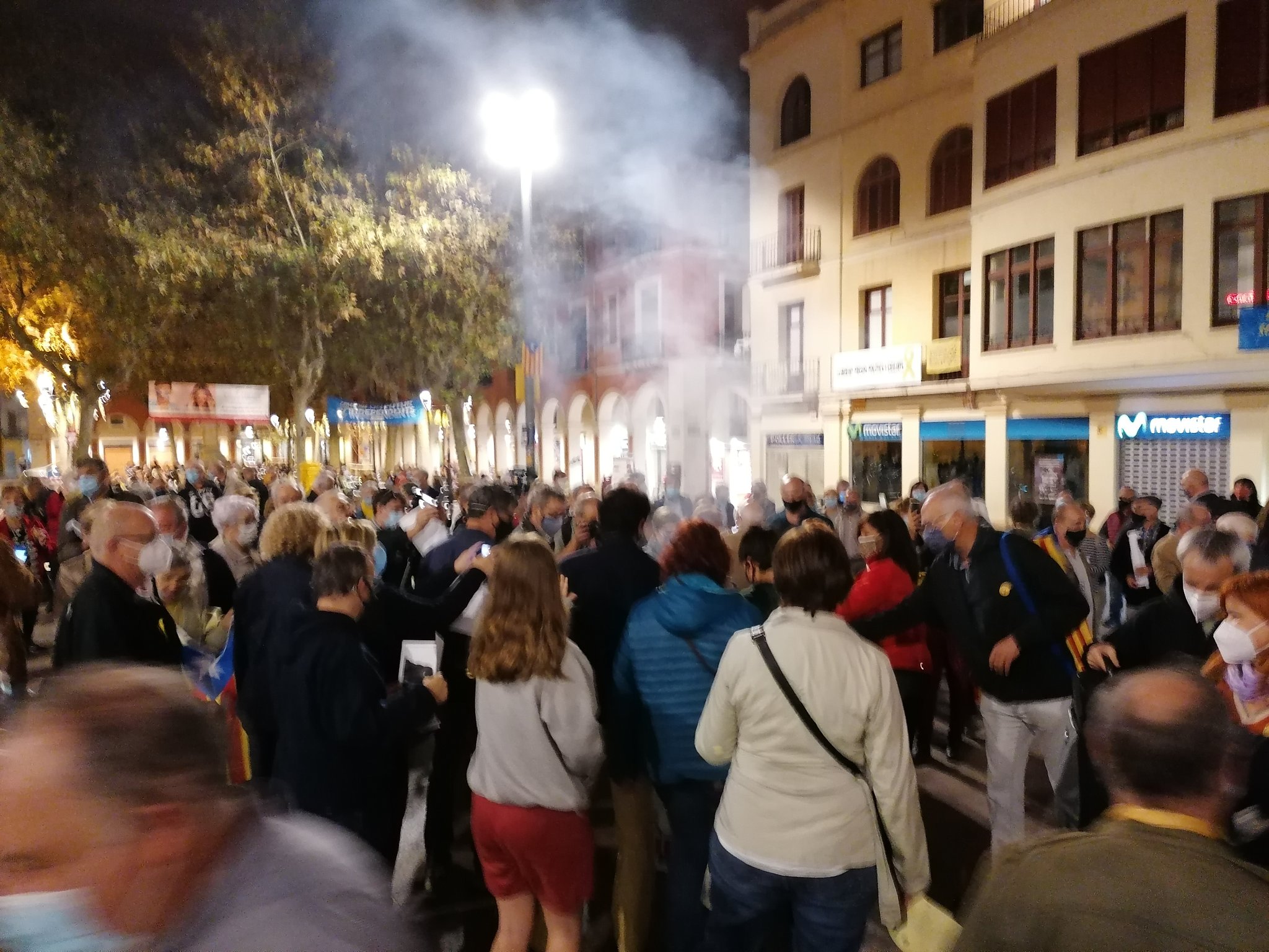 Els participants a la concentració van cridar proclames com "Catalunya no té rei", "Mor al Borbó" o "El rei és de Vox" mentre s'arremolinaven al voltant de la foguera per anar cremant les imatges.