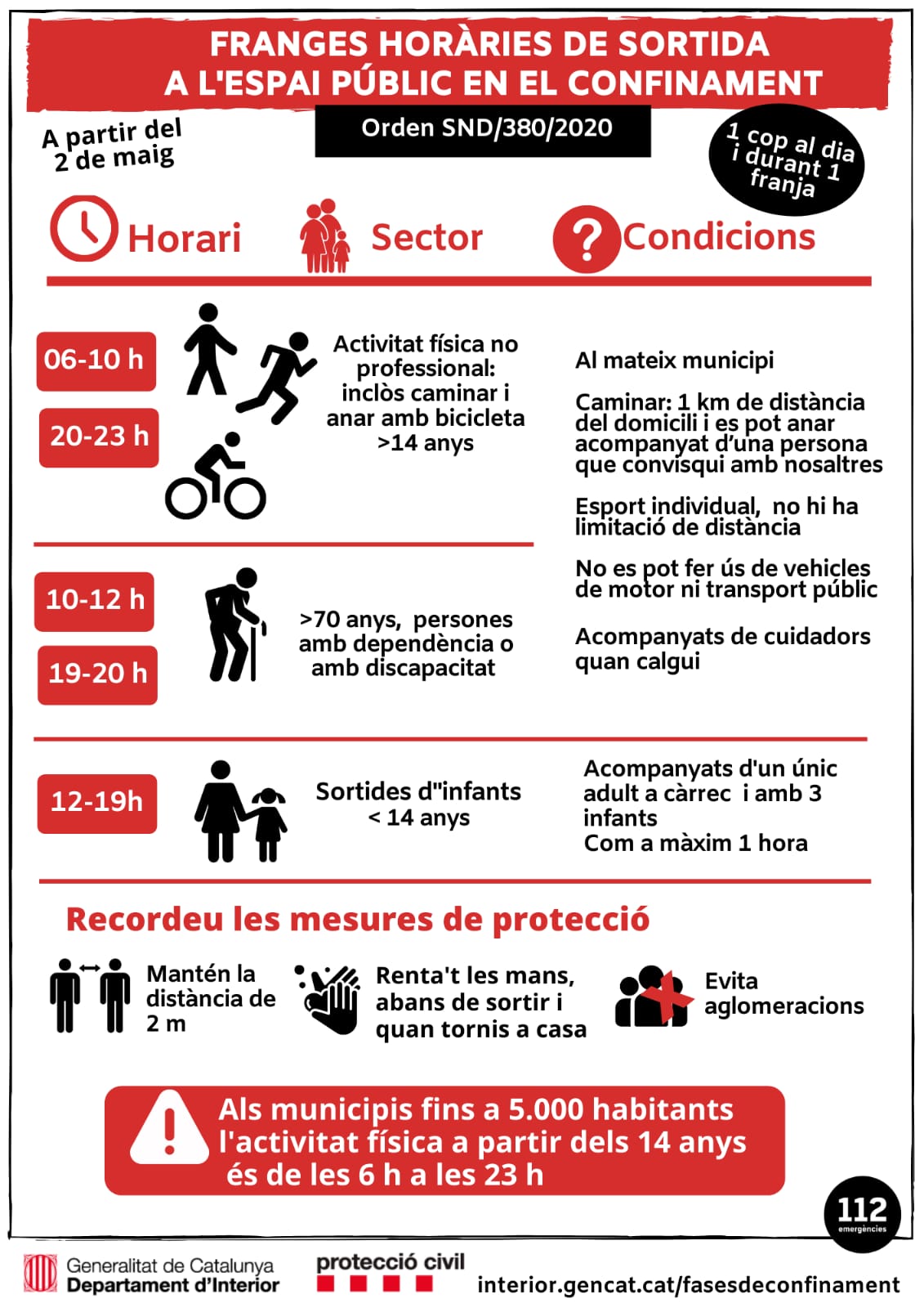 Ha arribat l'esperat dia. Aquest matí, el primer en què es permetia els esportistes i gent gran sortir al carrer després de setmanes de confinament, s'han potut veure molts ciclistes, corredors i gent de passeig. Mascaretes ben poques. Aprofitant el bon temps, molta gent ha sortit a fer esport entre les sis i les deu del matí. Hi havia moltes ganes i molt d'ambient, gairebé com un matí de dissabte qualsevol.