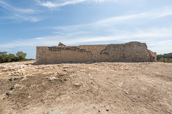 Foto: L’interior de l’aula, on es veu l’inici de l’antiga volta que tancava l’espai i subjectava la segona planta i, al fons, la torre romana tardorepublicana
