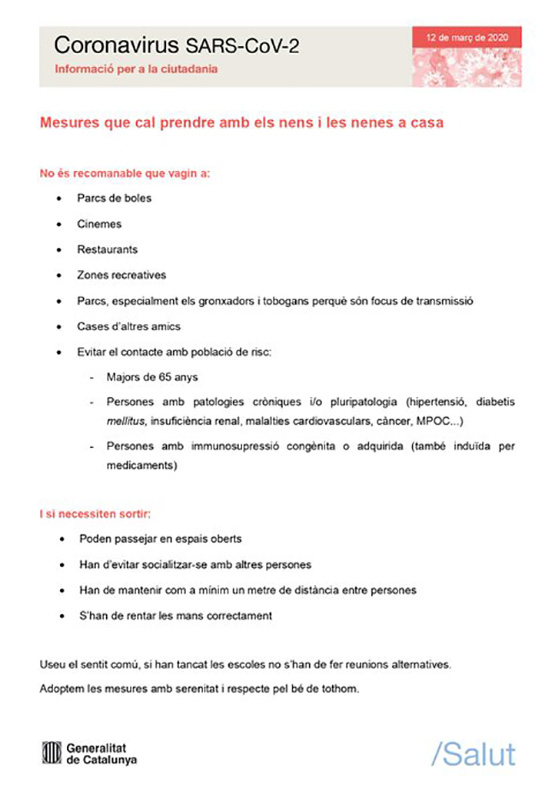 Durant aquests dies, els centres educatius han donat feina als alumnes per fer a casa i consells per entretenir-se, així com mesures de precaució davant del coronavirus.