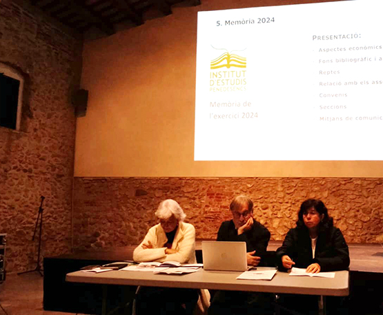 La secretària de l’IEP, Maria Teresa Sadurní, va presentar la memòria d’activitats de l’entitat al llarg del 2024, que va ser aprovada per l’assemblea. Al llarg de l’any 2024 l’IEP ha realitzat 75 activitats (conferències, exposicions, sortides, excursions, debats, jornades, seminaris, ...) en diversos municipis penedesencs a les quals van assistir unes 2.300 persones i es van realitzar convenis de col·laboració amb trenta ajuntaments i tres consells comarcals.