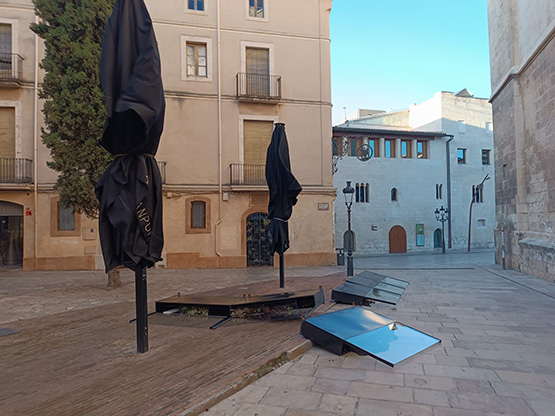 A més, a diversos establiments han caigut para-sols, pèrgoles i altres elements de mobiliari exterior de les terrasses.