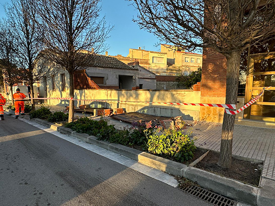 Els parcs públics i zones de jocs infantils romandran tancats durant tota la jornada. Al passeig Rafael Soler de Vilafranca ha caigut part d’una paret perimetral i els operaris hi estan treballant.