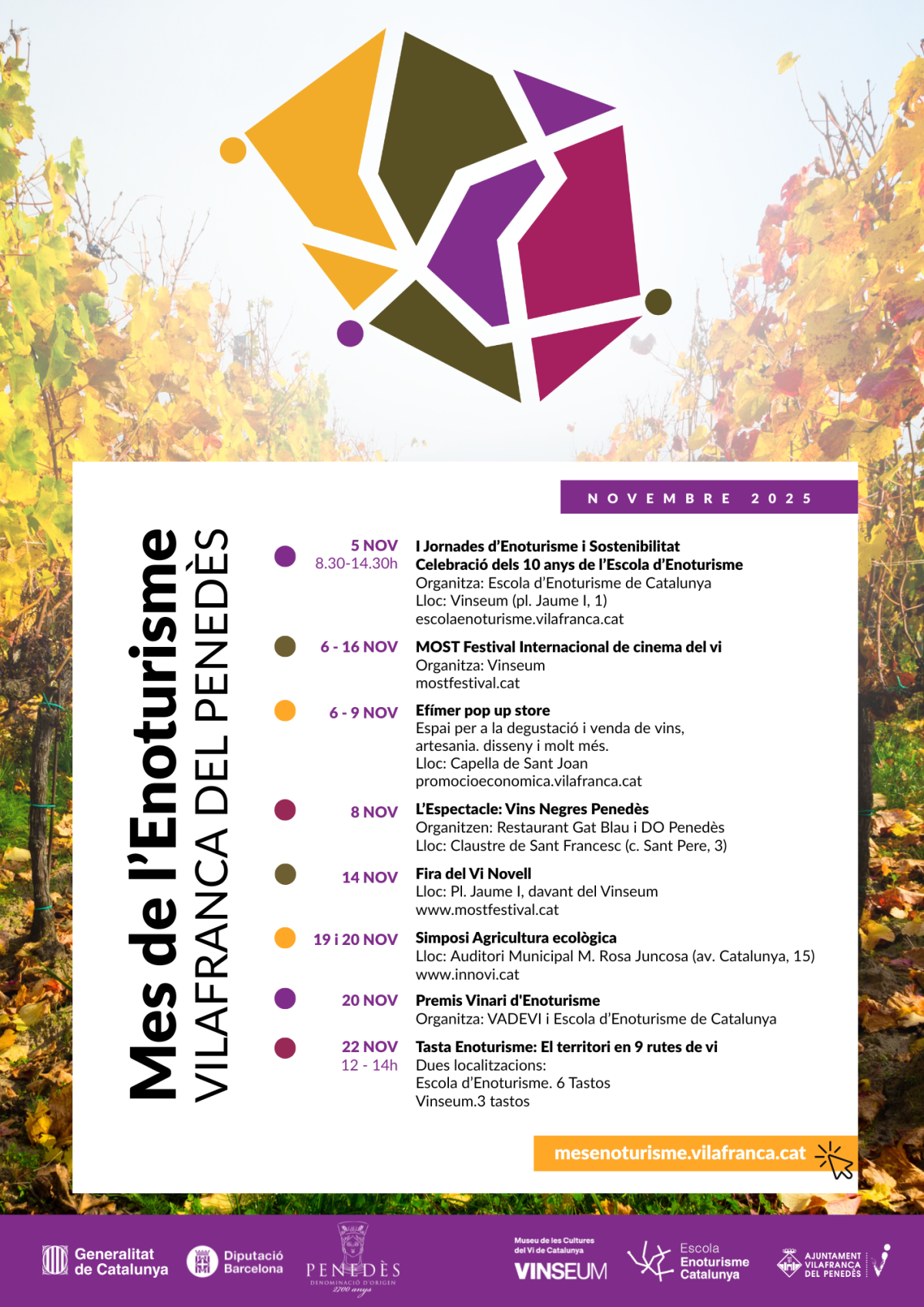 El programa combina tastos professionals i populars, jornades, esdeveniments culturals i actes institucionals. Es pot consultar a la web mesenoturisme.vilafranca.cat.