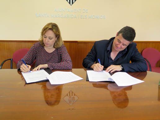 L’alcaldessa de Sant Margarida i els Monjos, Imma Ferret, i el president del Consell del Centre de Normalització Lingüística (CNL) de l’Alt Penedès i el Garraf, Josep Moya, han signat un conveni que permetrà estendre el programa de foment de l’ús social del català Voluntariat per la llengua (VxL).