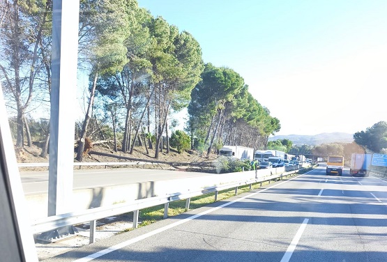 Un arbre caigut a l’AP-7 al punt quilomètric 181-176, al terme de Subirats, provoca retencions de més de 9 quilòmetres en sentit sud, cap a Tarragona des de les 10.30h. D’altra banda, també hi ha tallades dos carreteres de la Xarxa de Carreteres Locals de la Diputació de Barcelona: la BV-2415 (Olèrdola) i la BV-2155 (Puigdàlber). També ja s'ha resolt una altre incidència similar a la BP-2126 (Font-rubí).