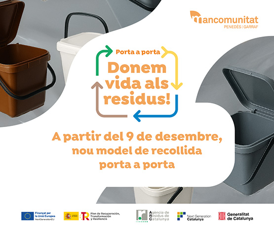 A partir del 9 de desembre, El Pla del Penedès iniciarà el nou model de recollida de residus Porta a Porta. L’objectiu és avançar cap a una millora de la gestió dels residus que es generen al municipi i augmentar els índex de reciclatge, en línia amb les normatives vigents i amb el repte de l’emergència climàtica.