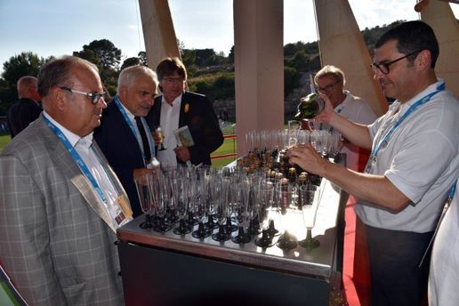 La Confraria del Cava Sant Sadurní continua amb els actes d’homenatge a Tarragona amb motiu dels Jocs del Mediterrani. Aquest cap de setmana, concretament divendres, ha participat en l’obertura de la competició oferint els caves d’alguns associats de l’entitat. Alguns caves de la confraria es van servir a la zona VIP de l’estadi per poder ser degustats pels convidats, pels membres de les federacions internacionals i pels voluntaris.