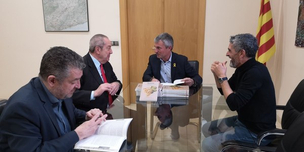 El president del Consell Comarcal, Xavier Lluch, va acollir dijous passat l’acte de lliurament de diversos exemplars de l’obra “Raïms” i de la seva nova edició en anglès, “Grapes”, oferts per la Consultoria Vitivinícola Rius & Rius Assessors i destinats al fons de les biblioteques i de l’Arxiu Comarcal de l’Alt Penedès.