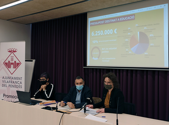 L’Ajuntament de Vilafranca inverteix 6.250.000 euros del pressupost anual de l’ens, un 10% del total, en l’àmbit educatiu, 5 milions dels quals es destinen a activitats que no són de competència municipal. Segons han reiterat aquest migdia tant l’alcalde de Vilafranca, Pere Regull, com la regidora d’Educació, Xell Montserrat, “un 80% del que fem és voluntat política i un 20% competetència municipal”.