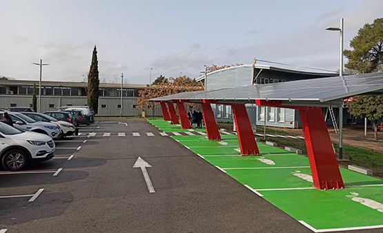 L'alcalde de Vilafranca, Pere Regull; el regidor d'Urbanisme, Francisco Romero; i el regidor de Promoció Econòmica, Joan Manel Montfort; han visitat aquest matí les noves “fotolineres” de l’aparcament del Centre Àgora i les obres de remodelació de l’edifici.