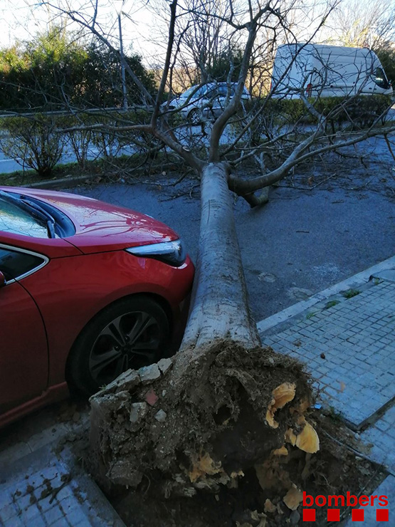 A conseqüència del fort vent d'avui, un arbre ha caigut a les 11.43h al carrer Balcó de les Clotes de Vilafranca al mig de la calçada, sortosament sense provocar ferits ni desperfectes. Els Bombers han hagut d'actuar per retirar-lo i permetre la circulació de vehicles. Mitja hora més tard, una altra branca ha caigut uns metres més avall del mateix carrer i els Bombers també l'han retirat, així com una branca que ha caigut al costat de l'AP-7 a Olèrdola.