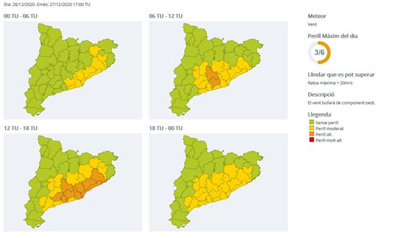 El fort vent serà avui el protagonista del dia. Les ratxes han superat aquest matí els 97,2 km/h a les estacions automàtiques de Font-rubí i els 73,1 km/h a Canaletes (Mediona), a Sant Martí Sarroca han arribat els 70,2 km/h i a Sant Sadurni i a la Granada han superat els 58,7 i els 55,8 km/h, respectivament. Protecció Civil de la Generalitat va activar ahir l'alerta del pla VENTCAT per la previsió del Servei Meteorològic de Catalunya (SMC) de fortes ratxes de vent sobretot avui a moltes comarques del litoral i prelitoral de Barcelona, Catalunya central i interior de Tarragona. El risc més alt serà durant el matí a la nostra comarca i la de l'Anoia, i a la tarda s'estendrà cap al Baix Penedès, l'Alt Camp, àrea de Barcelona i la Selva. Cap al vespre el risc disminuirà.