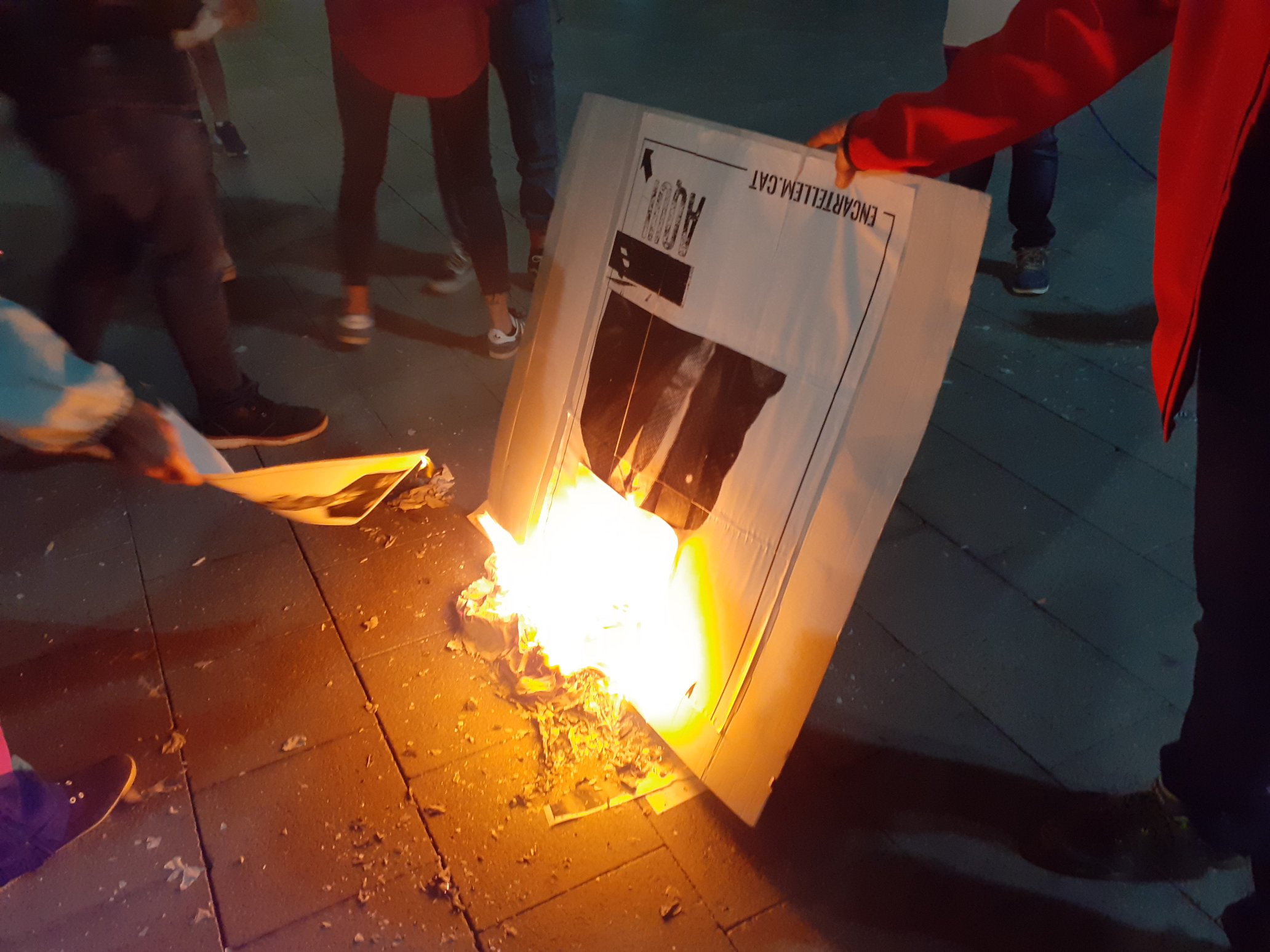 Un centenar de persones es van reunir ahir al vespre a Vilafranca i a Sant Sadurní per cremar fotografies de Felip VI, seguint la convocatòria de l'Assemblea Nacional Catalana (ANC) davant els ajuntaments d'arreu de Catalunya en la vigília de la visita del rei a la capital catalana.