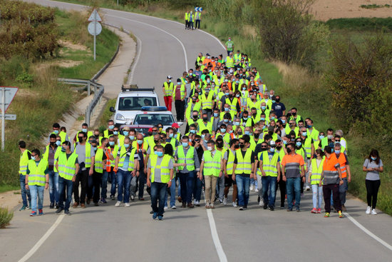 Gairebé tota la plantilla de Robert Bosch a Castellet i la Gornal (Alt Penedès), formada per 300 treballadors, s'ha manifestat aquest dimarts en una marxa lenta prop de la fàbrica.