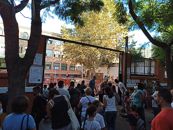 Cues, nervis, il·lusió, incertesa i taps a les entrades de la majoria d’escoles de la comarca. Així ha estat el primer dia del curs escolar 2020/2021, després de sis mesos amb els centres tancats. Tot i que els alumnes tenien l’hora d'entrada establerta, entre les 8.50 i les 9.00h, els pares i mares han col·lapsat les entrades per veure els seus fills entrar. Cada centre escolar ha establert les seves pròpies normes, seguint les indicacions del departament de Salut de la Generalitat.