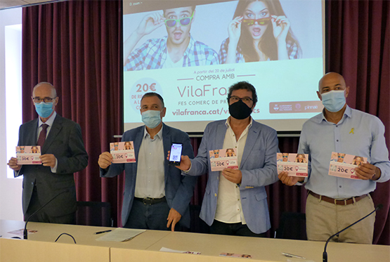 L’Ajuntament de Vilafranca donarà dilluns vinent el tret de sortida a la campanya “Compra VilaFrancs, fem comerç de proximitat”. Es tracta de xecs de compra per valor de 20 o 30 euros que es posaran a disposició de la ciutadania en els establiments adherits, que de moment en són una setantena,un nombre que els impulsors esperen que s’incrementi amb el pas de les setmanes. Amb aquests xecs, que podran adquirir qualsevol persona major d'edat empadronada a Vilafranca, es podrà comprar productes locals de diferents establiments amb un descompte de 12 o 20 euros, en funció de l'import.