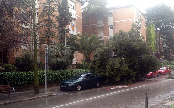 La intensa pluja que no deixa de caure en les darreres hores i dies ha provocat la caiguda de diversos arbres a la comarca, un dels quals ha caigut aquest migdia sobre un vehicle que es trobava aparcat a la carretera de Moja de Vilafranca. Els Bombers de la Generalitat han rebut l’avís a les 13.40h i hi han desplaçat dos vehicles, que han treballat durant una hora per tallar-lo i retirar-lo. Per aquest motiu, la carretera ha estat tallada durant aquest temps.