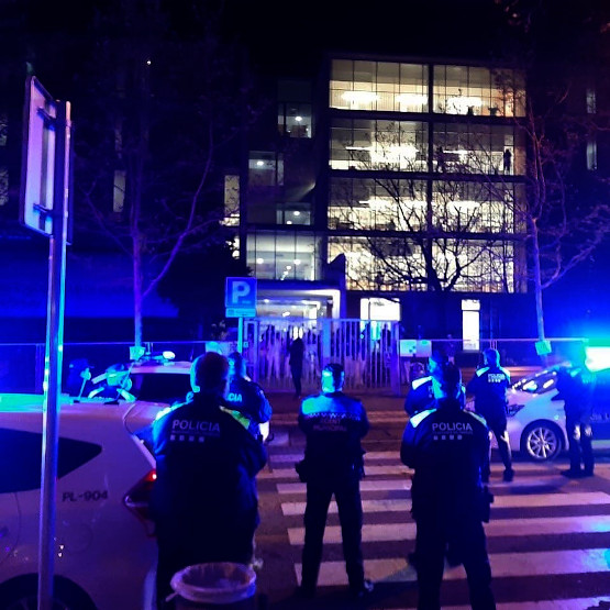 Membres de les policies locals de Vilafranca, Sant Sadurní, Santa Margarida i els Monjos, vigilants d'Olèrdola i dels Mossos d'Esquadra van reunir-se ahir, a les 20h, davant el Centre Sociosanitari Ricard Fortuny de Vilafranca per homenatjar els professionals del centre en aquests moments difícils.