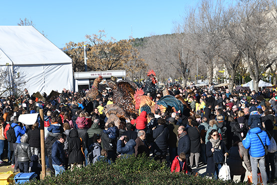Malgrat la pluja i el fort vent que va bufar durant tot el cap de setmana, la Fira del Gall de Vilafranca va consolidar l’èxit d’assistència. Milers de persones es van apropar al Parc de Sant Julià per gaudir d’una fira emblemàtica i única a Catalunya. La seva aposta pel Gall del Penedès amb IGP, maridada amb la gastronomia d’alta qualitat i els excel·lents vins de la DO Penedès consoliden la fira novament com un símbol pel territori.