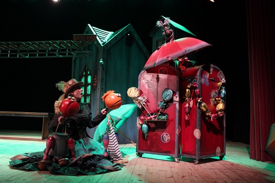 A partir dels objectes trobats a l’estació i del bagul que porta la Sara, els dos personatges donen vida al relat de Hansel i Gretel, dos infants perduts al bosc que hauran de fer servir l’enginy per retrobar el camí de casa. L’espectacle combina narració, titelles i música de piano en directe, creant un univers poètic, visual i proper, especialment pensat per al públic infantil.
