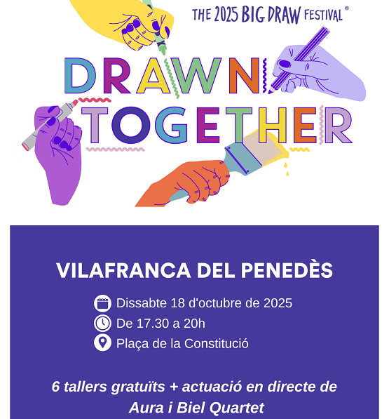 Vilafranca del Penedès celebrarà el dissabte 18 d’octubre la 10a edició del Festival Big Draw, la gran Festa del Dibuix, que enguany es concentrarà a la plaça de la Constitució i comptarà amb la música en directe d’Aura i Biel Quartet.