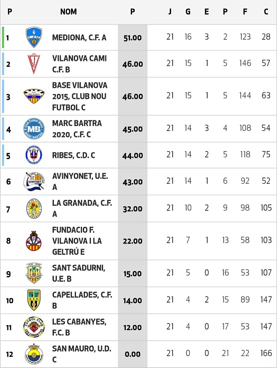 Els medionencs han completat una temporada excel·lent i molt regular, mantenint-se sempre en la lluita pel lideratge amb els equips capdavanters. El conjunt ha sumat fins ara 16 victòries, 3 empats i només 2 derrotes, l’última de les quals es remunta a la sisena jornada del campionat.