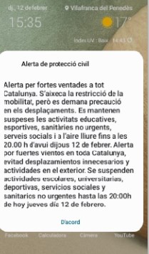 Parlon també ha explicat que segueixen estrictament el protocol d'activació de l'ES-Alert i ha recalcat que la meitat de les comarques del territori han estat afectades per un nivell 6 de 6 de risc de vent i la resta, també tenien perills alts. “Estem davant d'un episodi que justificava l'enviament de l'ES-Alert”, ha insistit.