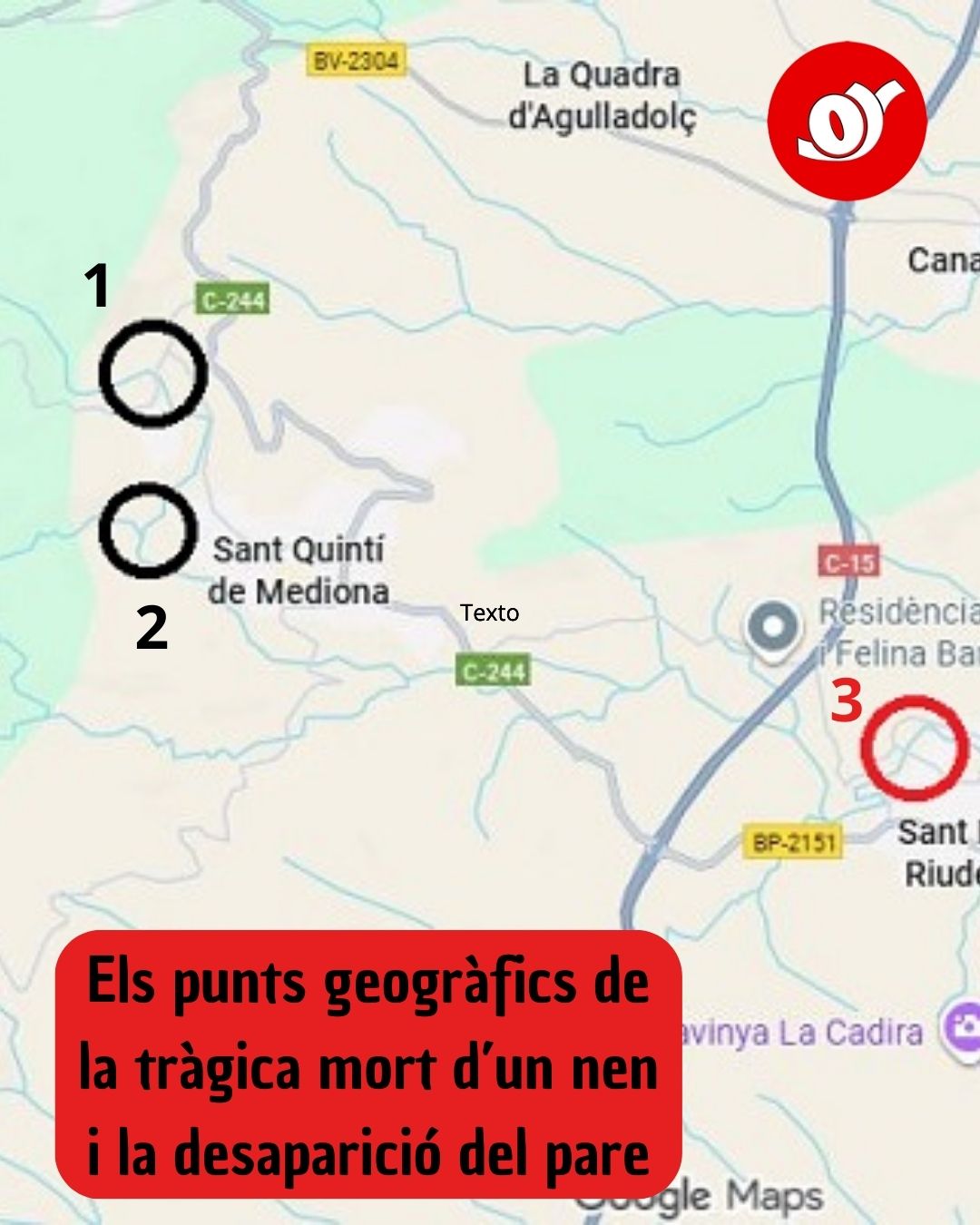 Aquest matí, amb moltes dotacions a peu i un helicòpter, entre els punts 2 i 3, els Bombers i els Mossos feien recerca del cos del pare.