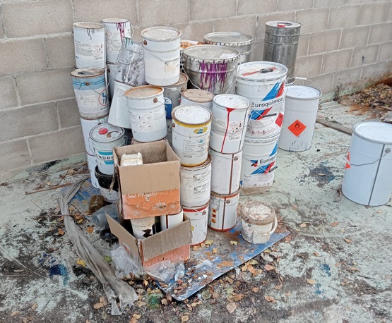 A més, els agents van detectar zones de terra sense pavimentar que despreníen una "forta olor a dissolvent", així com vessaments de pintura que s’infiltraven per les escletxes del paviment i entre els blocs de formigó del mur perimetral, fet que suposava un risc ambiental i per a la seguretat.