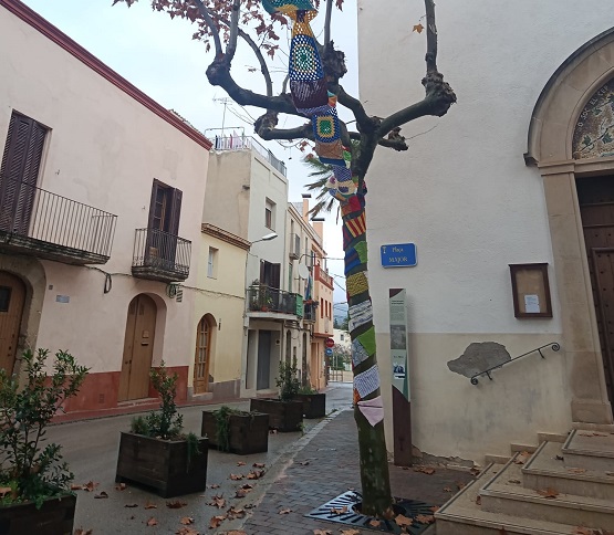 Els quadrats teixits, elaborats amb colors variats i creatius, s’han unit per formar tiretes decoratives que ja guarneixen arbres i baranes de la plaça de l’església, aportant un toc càlid i original al Nadal del poble. La instal·lació ha estat possible gràcies a la feina de la brigada municipal, que també va oferir un esmorzar a totes les persones participants per donar el tret de sortida a les festes nadalenques.