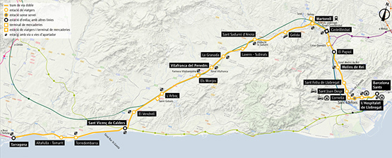 Els combois que transporten mercaderies perilloses circulen habitualment entre Tarragona i Barcelona per línies que, segons Pro Vegueria Penedès, no compleixen la normativa de seguretat, ja que passen molt a prop de nuclis urbans, zones turístiques i àrees industrials. El traçat afecta municipis com el Vendrell, Vilafranca del Penedès, Sant Sadurní d’Anoia i Gelida.