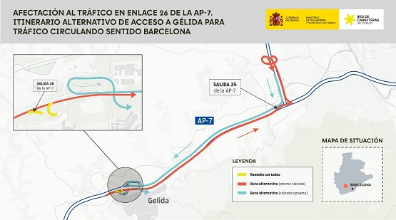 Per poder dur a terme aquestes tasques, es tallaran els ramals de sortida i incorporació de l’enllaç 26 de l’AP-7 des del 22 de setembre fins al 3 d’octubre, en horari nocturn (de 22 a 6 hores).