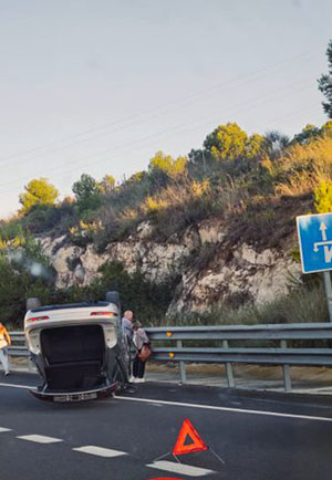 Aquest matí, uns minuts abans de les 8.30h, un turisme ha patit un accident a la C-15 al terme d'Olèrdola, en sentit Vilafranca. Com a conseqüència el vehicle ha bolcat. Una de les dues persones que anaven al vehicle han sortit il·leses i l’altra encara es desconeix el seu estat, segons fonts del Servei Català de Trànsit. L’accident ha provocat retencions quilomètriques.