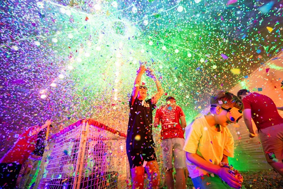 Inspirat en les famoses boles de neu, dins la cúpula es desplega un show de llums i música creada expressament, sincronitzat amb potents turbines que llancen confeti a l’aire, creant la sensació de viure una autèntica tempesta al teu voltant. Una experiència multisensorial que captura l’essència d’un fenomen natural en un entorn íntim i fascinant.